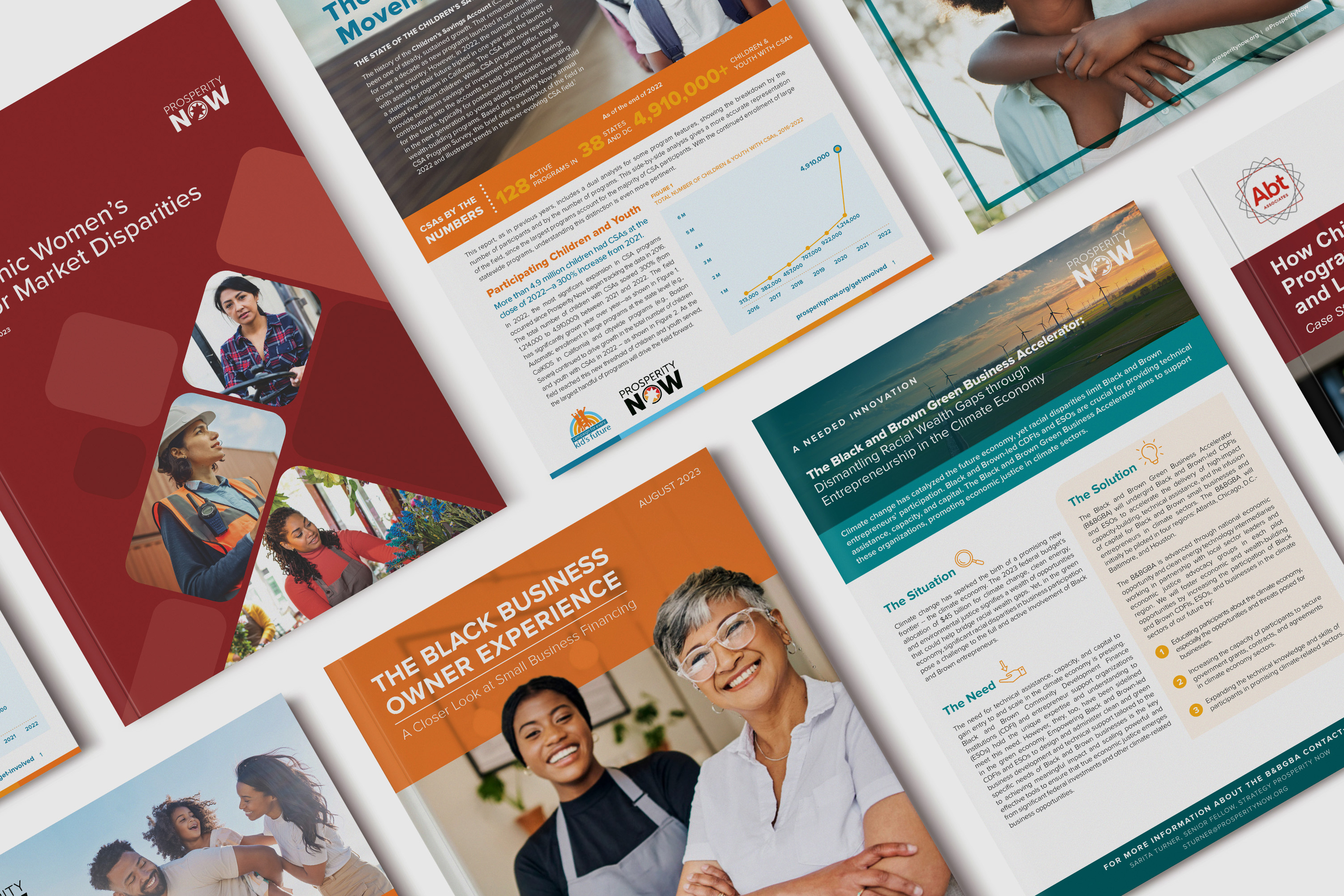 During my time at Prosperity Now as Senior Graphic Designer, I worked on over 24 publications that were published to Prosperity's resource library online. I worked with departments such as: Policy, Applied Research, Network Building and Communications. Many of the layouts include custom infographics, curated photography, iconography, charts and tables.