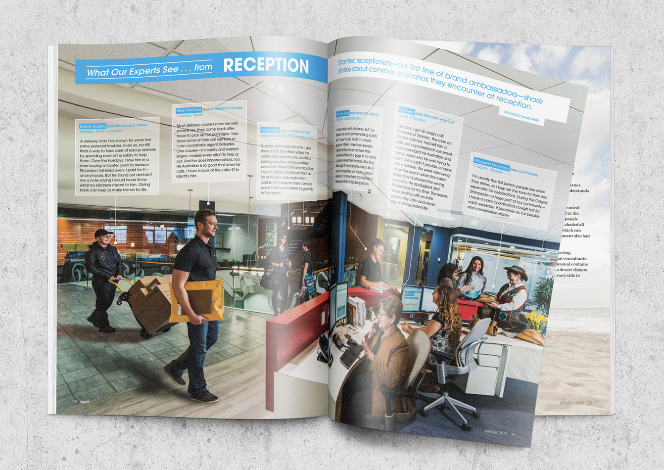 Spark is a quarterly employee magazine that celebrates the Stantec brand, culture and accomplishments. I collaborated with the executive leadership team on important topics related to Stantec’s strategic plan and core values. Spark was launched quarterly in email format from Stantec's President/CEO to staff. I printed copies and circulated the publication to offices across the US & Canada.
